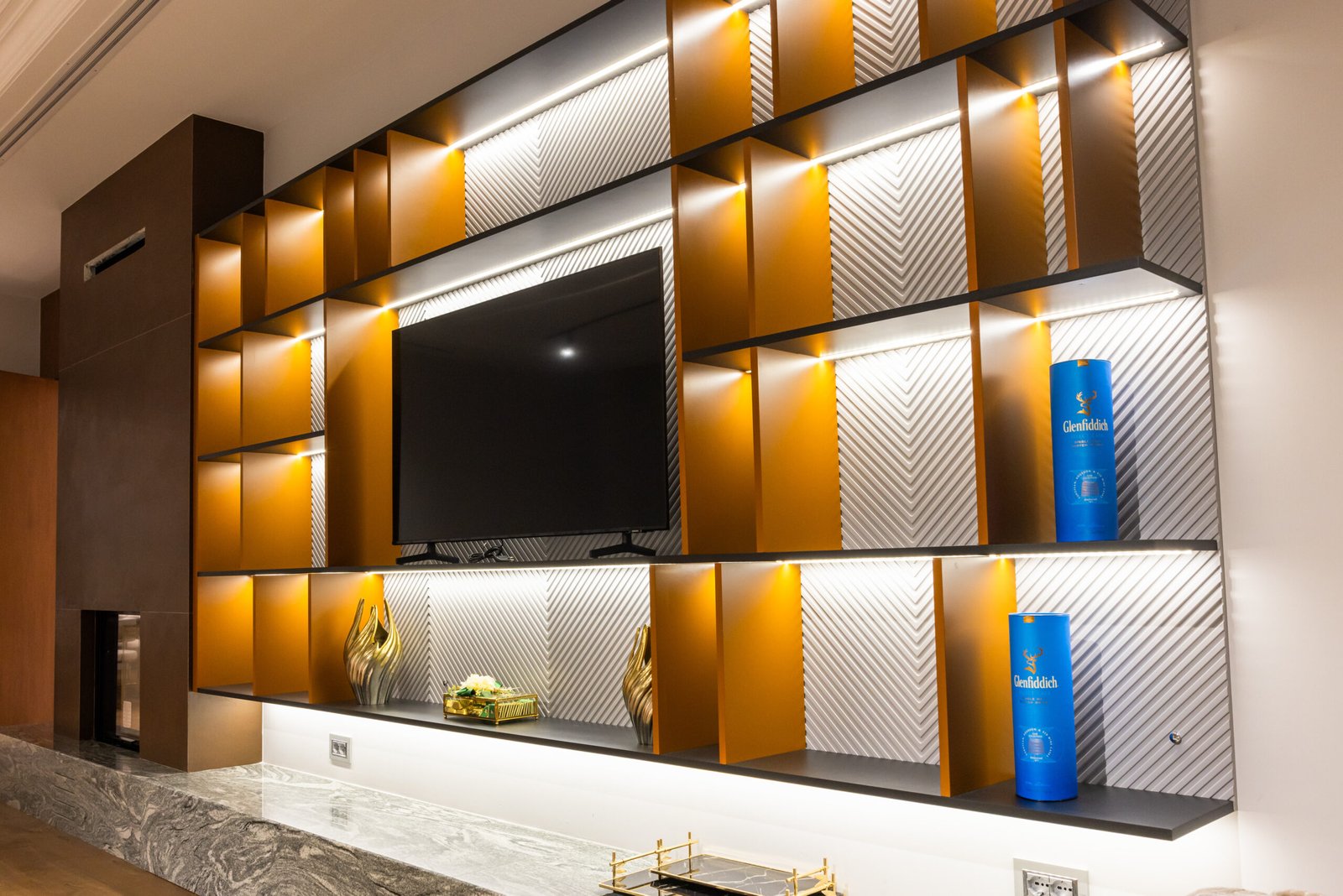 TV cabinets, shelving units, storage compartments, and integrated details are crafted using high quality materials and precise workmanship. With full flexibility in layout, materials, and finishing options, these TV units are built to be durable, functional, and timeless, enhancing both organization and design.